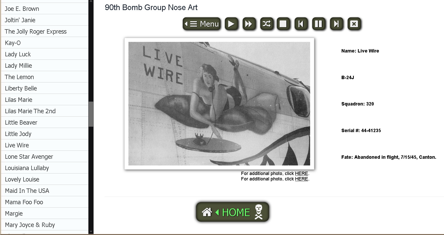 Thank you for your post and we're glad you're here. There are photos of Live Wire in our nose art gallery, there may be more you can look around. Also if you search in the original archived 90th forum, there is information on Live Wire as well.
