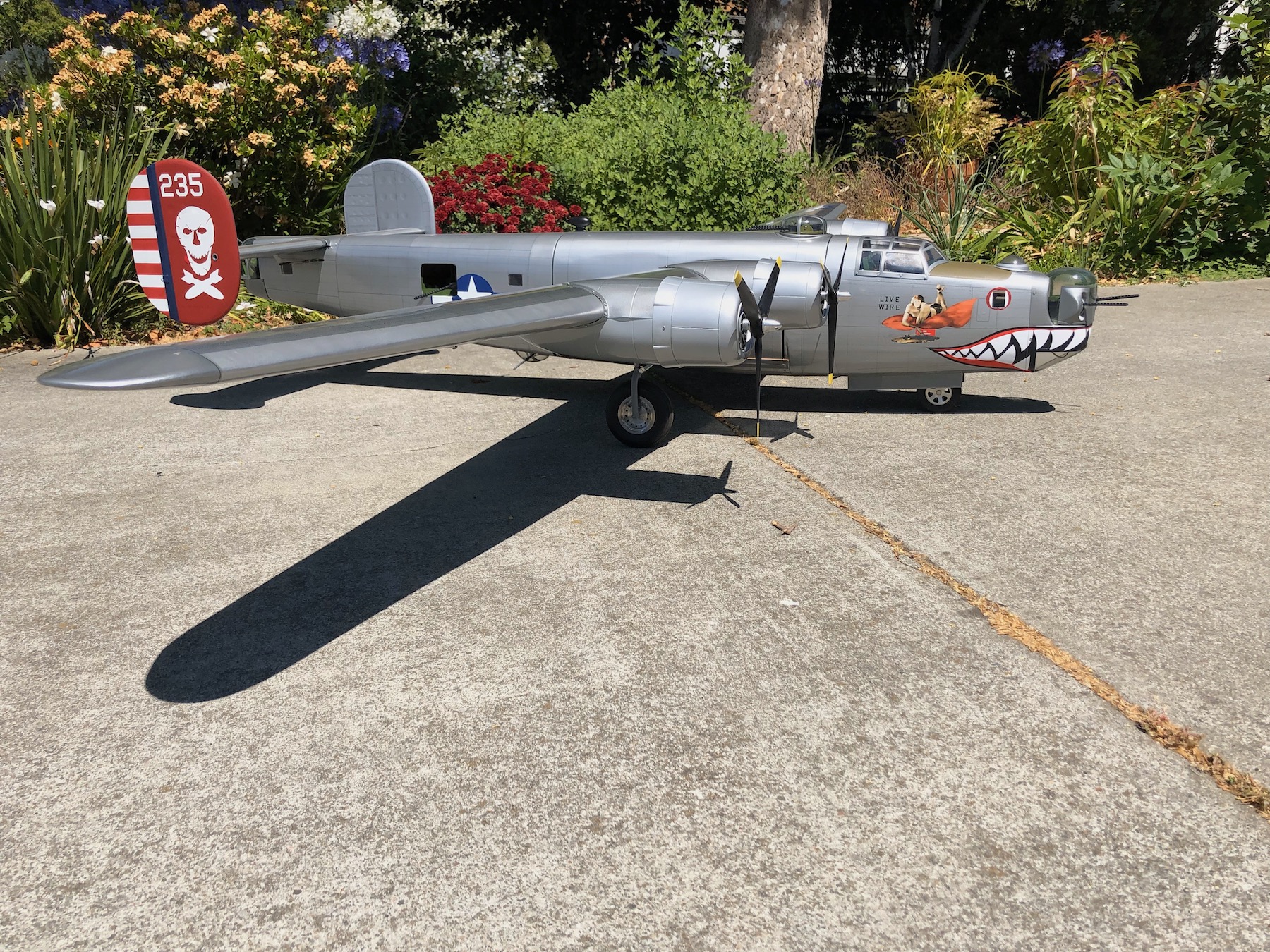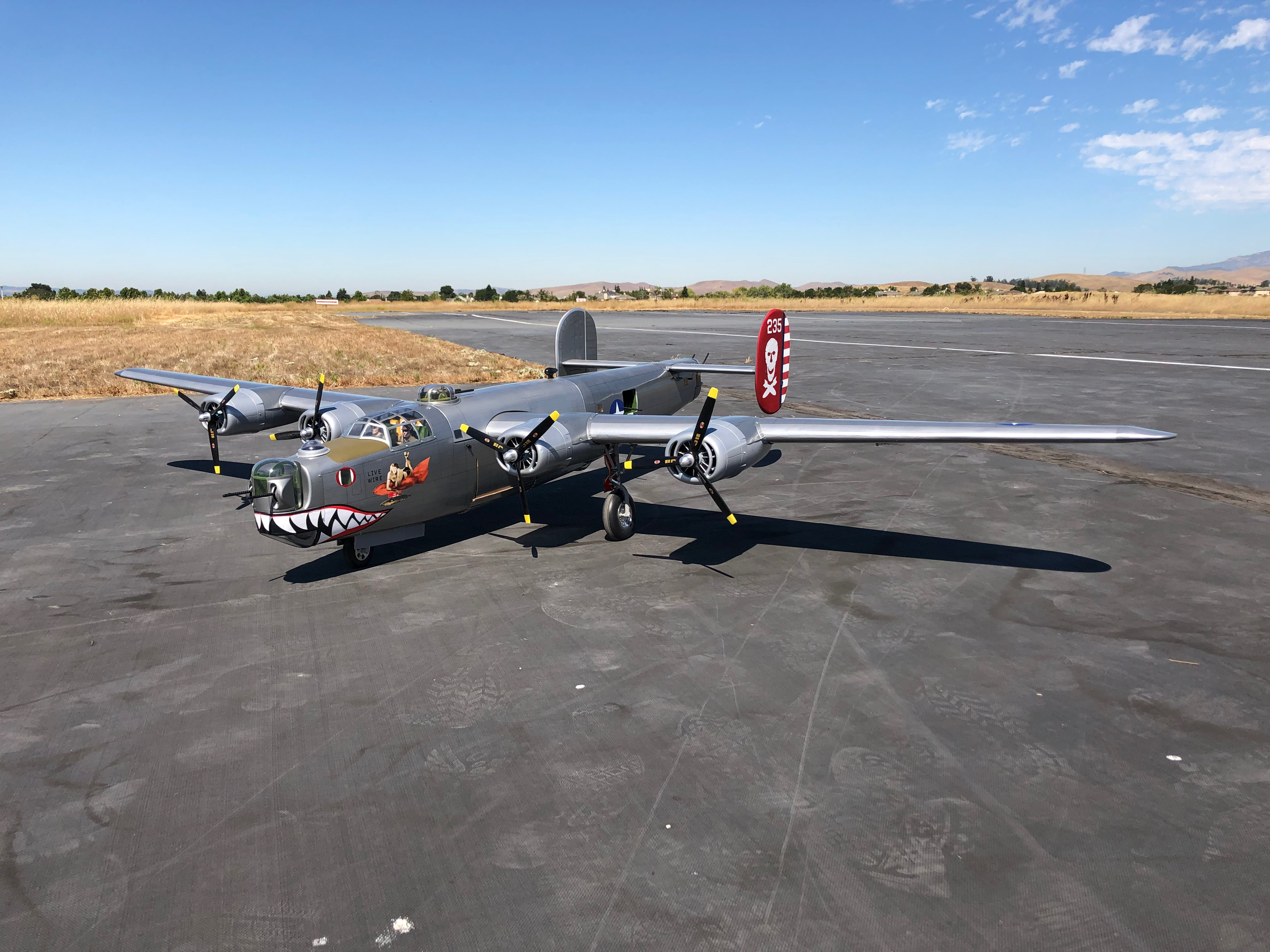 Years ago I built a similar Radio Control B-24 of 053 Old Iron Sides and read a story about Live Wire's crash and that the crew were supposed to fly Old Iron Sides on the mission but the normally reliable Old Iron Sides had a problem so they were assigned to Live Wire. With that link I had to select Live Wire as the aircraft to model and as of this writing the model Live Wire has successfully flown 123 times.