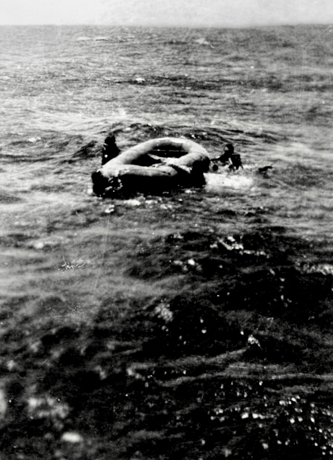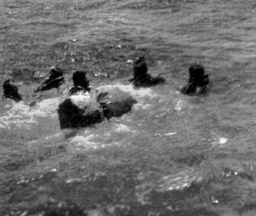 This incident began with the ditching on July 15th,1945. The 5 survivors were in the water for 25 hours in two rafts. My Dad and crew searched for them all day finally getting in the right spot after a fighter helped direct the PBY to the survivors in the rafts. When the PBY landed they had trouble getting the men close enough to the plane so one of the PBY crew members tied a rope around his waist and dove in the water to help the injured & dehydrated men. The navigator held onto the rope inside the PBY as they pulled each man to safety. What no one realized was, that there were sharks circling all around the rafts and under the PBY. The rescuers kept bumping up against something they thought was debris but turned out to be sharks. I have the names of all of the crew from the MACR. The names of the rescued men were also recently found in the diary of the PBY navigator who helped pull these men out of the water on July 16th, 1945.