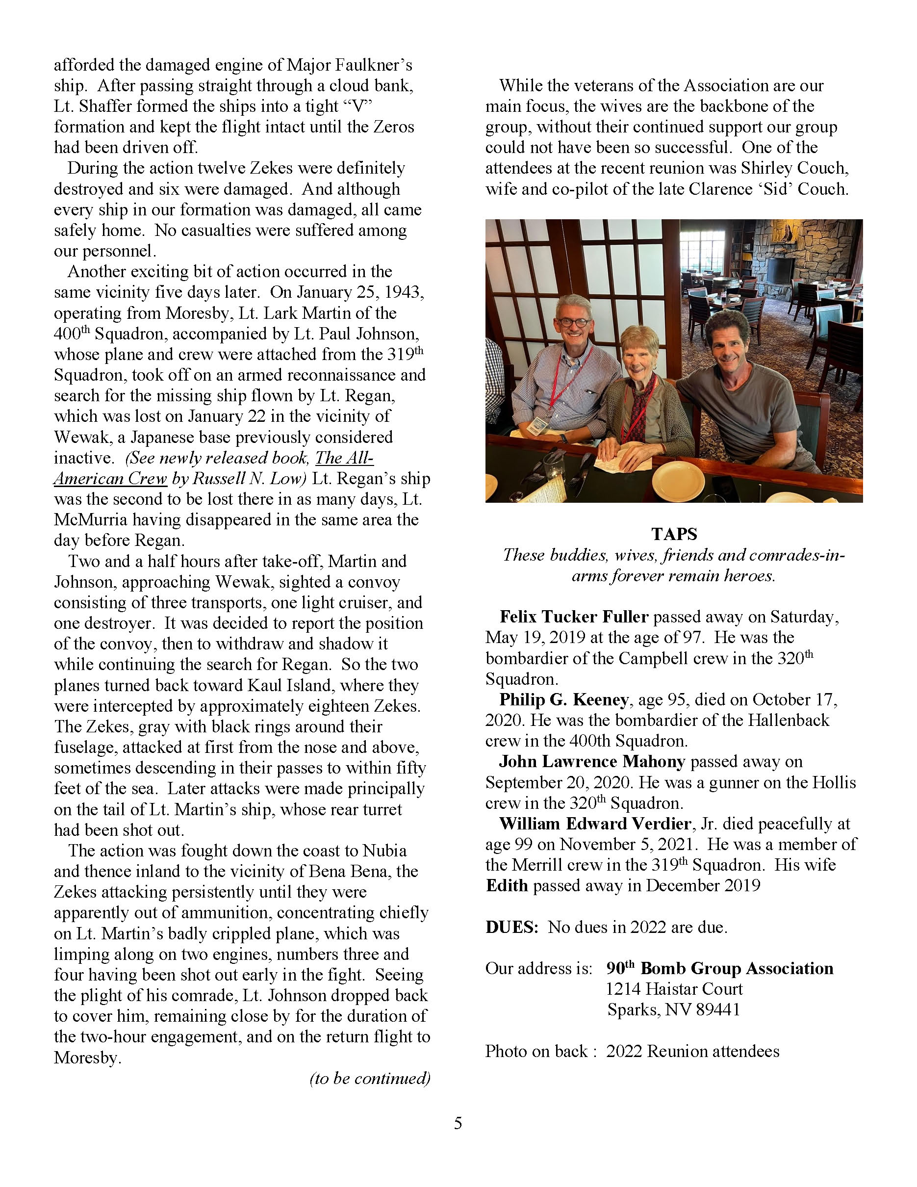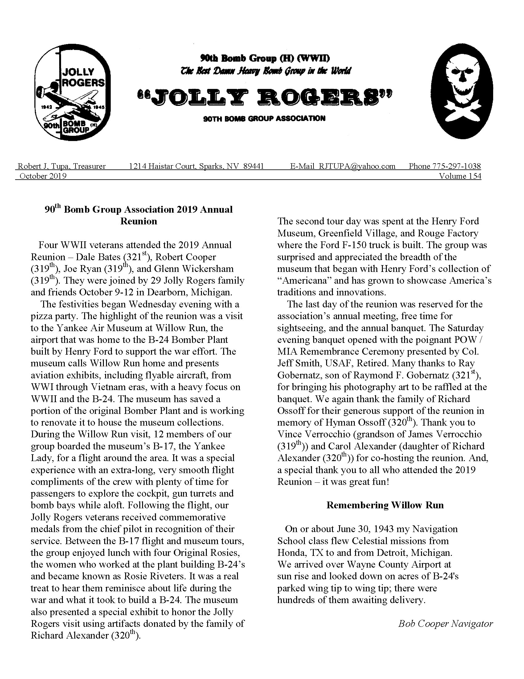 The most recent news letter of the 90th Bomb Group Association Vol. #154.