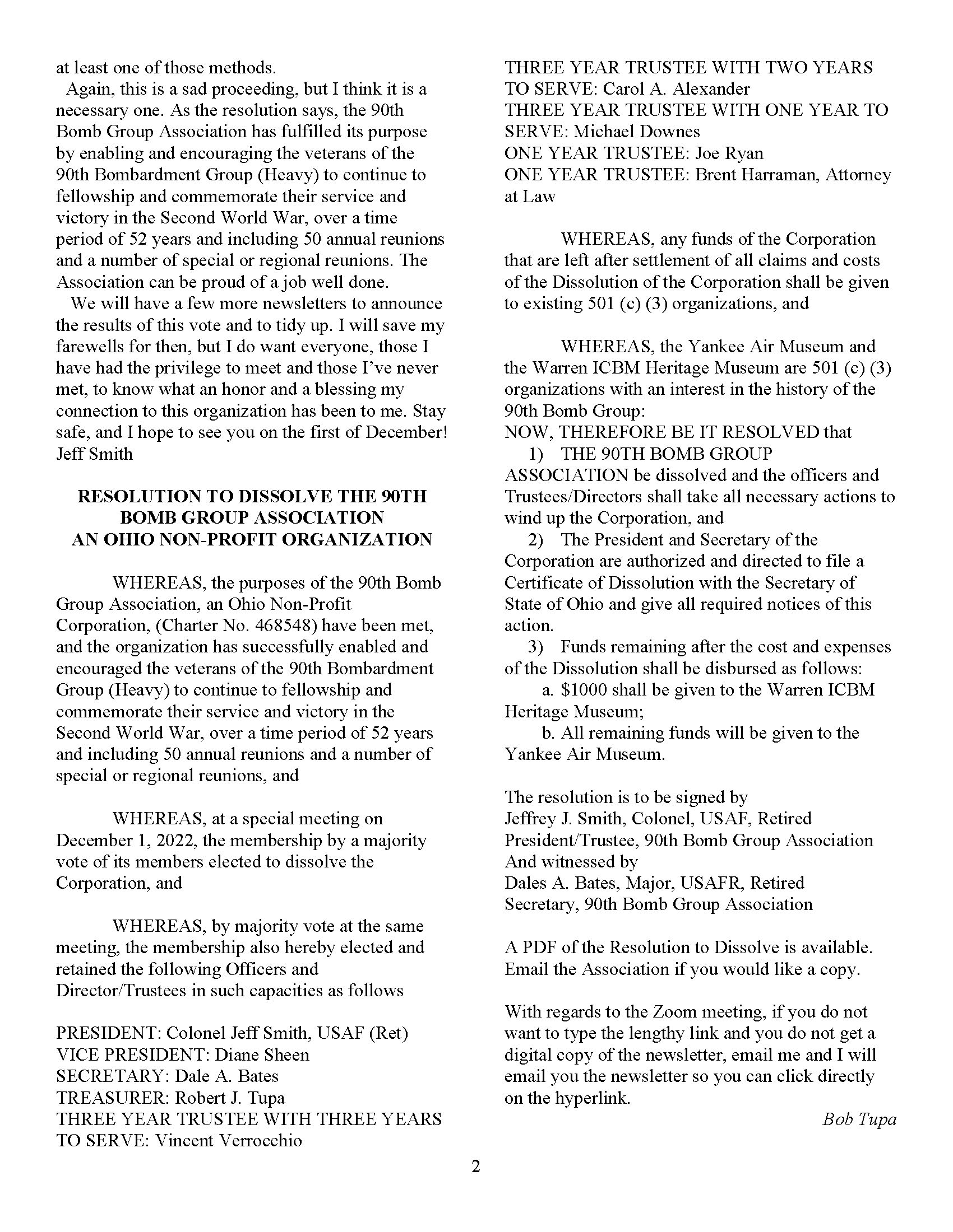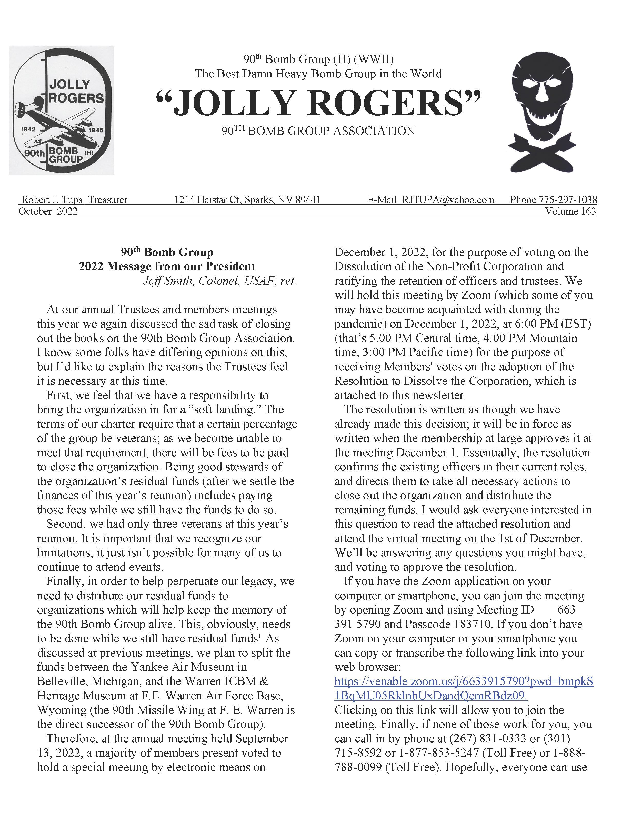 The most recent news letter of the 90th Bomb Group Association Vol. #163 October 2022.