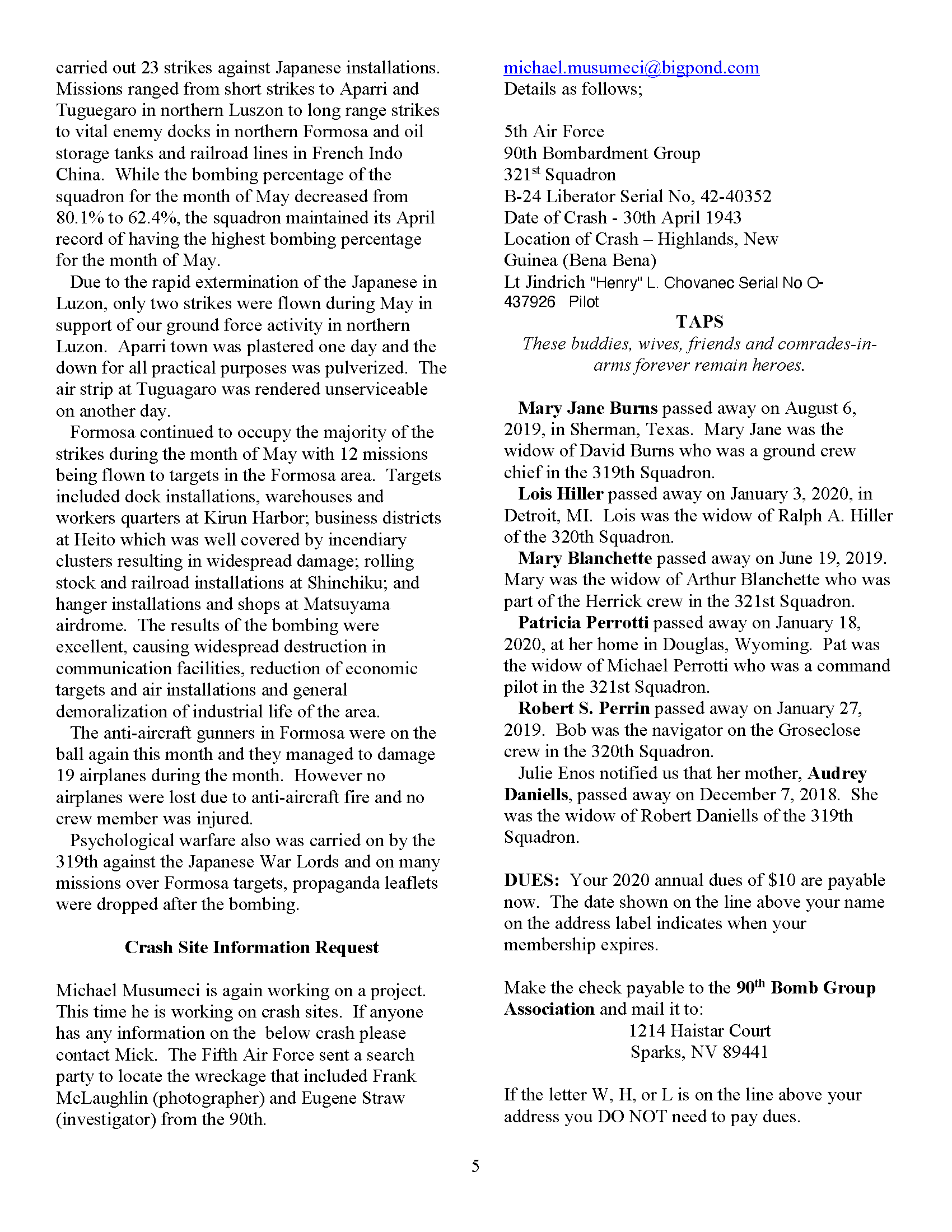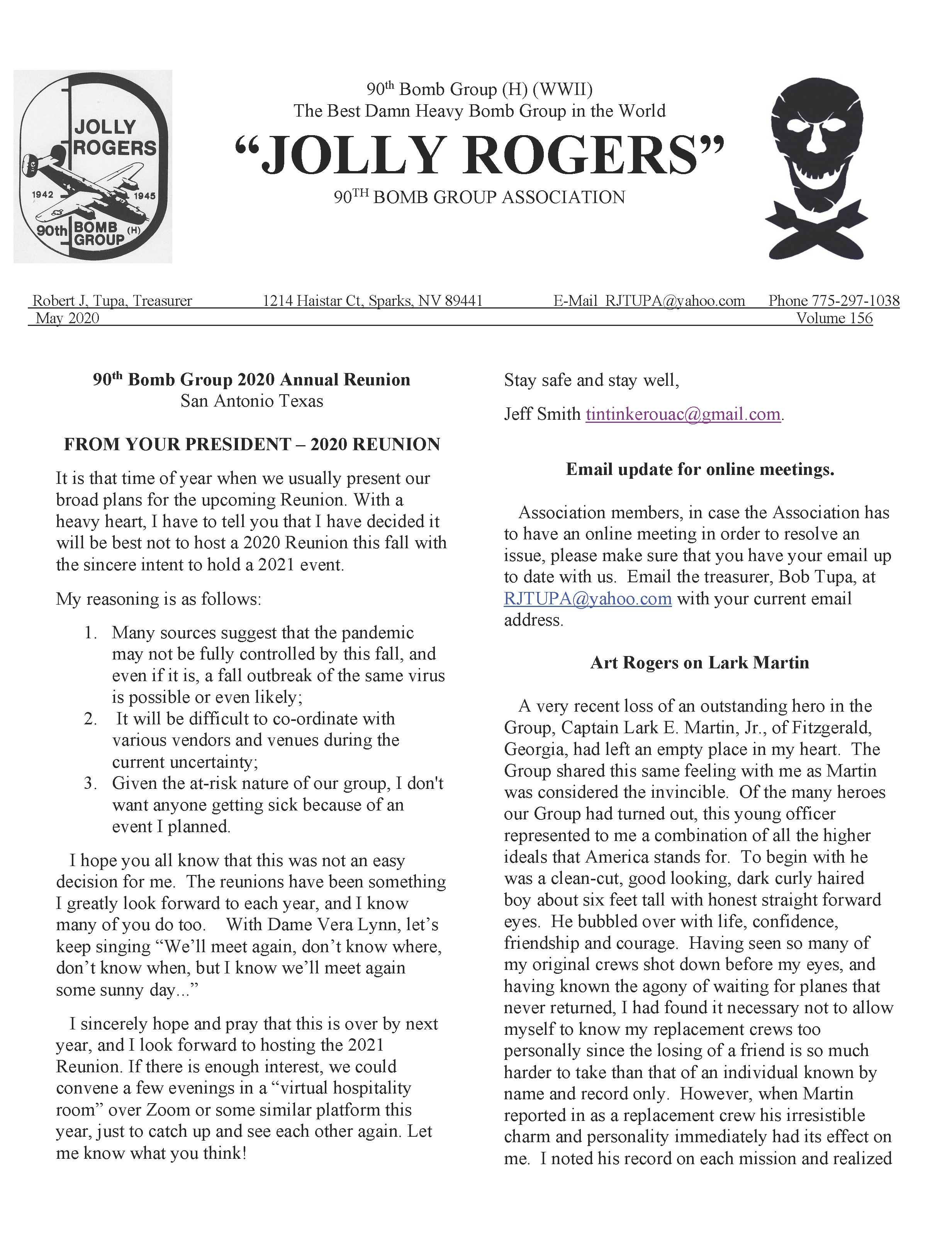 The most recent news letter of the 90th Bomb Group Association Vol. #156 MAY 2020.