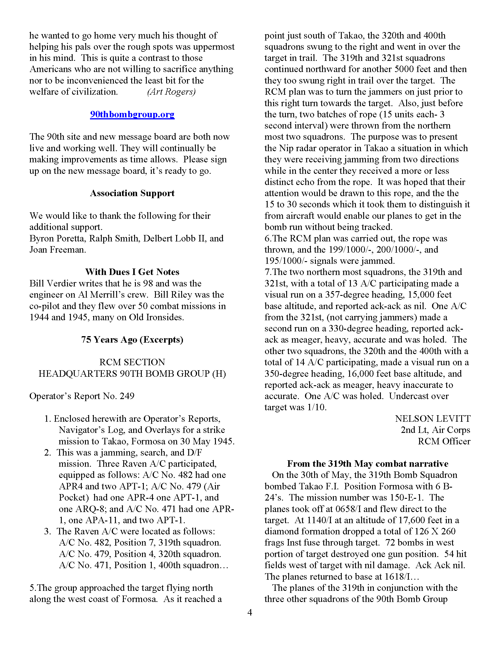 Any and all support for the 90th Bomb Group Association is greatly appreciated.