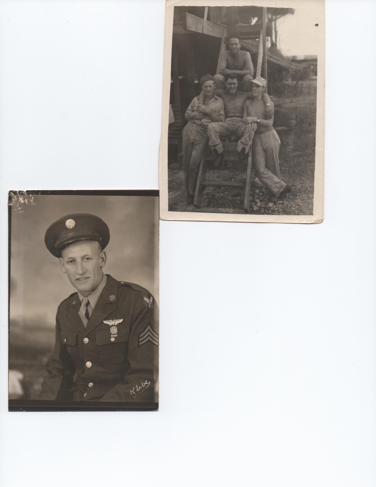 I am also attaching two photos. My grandfather is the one wearing a shirt with the three other guts(who I would love to know who they are too) and Then my Grandfather in his uniform.