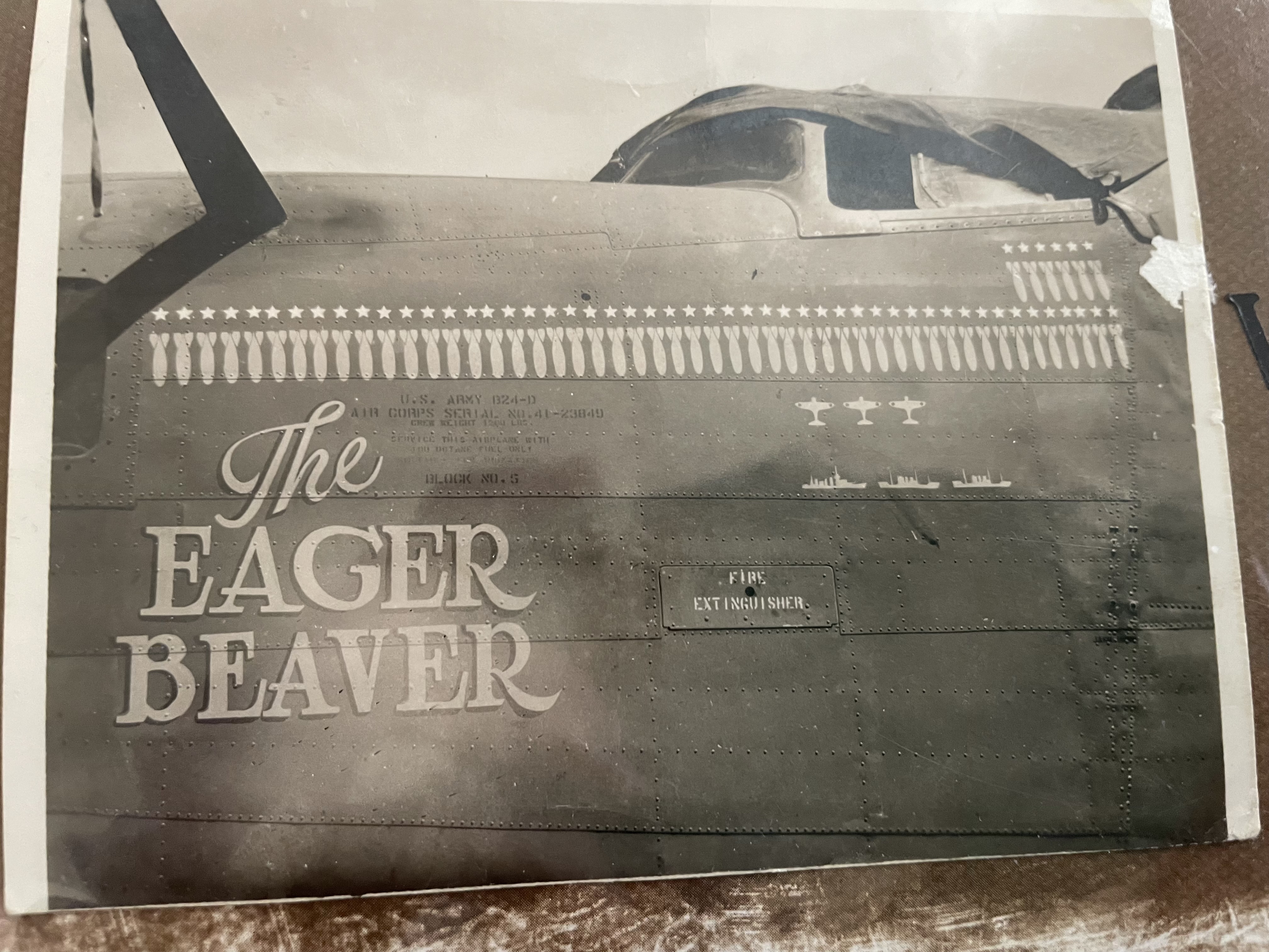 Wanted to add that I just found a photo of a plane he crewed on at one time. The Eager Beaver. From want I know he was a gunner . Attaching photo. Again any suggestion of additional information that can be added I would welcome. Thank you