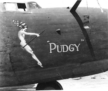 Pudgy threw her weight around enemy skies with good results - knocking out three zeros and retiring two of His Imperial Majesty's imperial navy. Also on the first daylight raid over Fortress (now ex-fortress) Rabaul, she ran up her number of missions to over ninety, when last counted.Click HERE for photo.